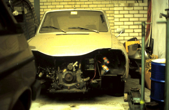 A ce moment-là la voiture semble déjà avoir des problèmes de moteur, parce que l'avant était démonté. Plus tard, l'auto arrivait chez un spécialiste hollandais de moteurs rotatifs qui commençait à démonter la voiture pour la restaurer. Et puis elle a passé du temps dans un entrepôt pour enfin arriver dans la collection.